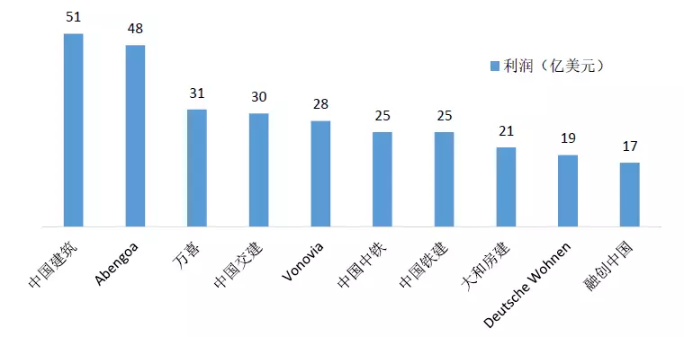 3、誰是全球最會賺錢的建筑公司?在利潤排名10強里來自中國的建筑公司有5家,融創(chuàng)中國是第一次進入該榜單。Abengoa來自西班牙,法國萬喜不必說,Vonovia和Deutsche Wohnen都來自德國,大和房建屬于日本??梢钥吹街袊ㄖo論是從規(guī)模還是盈利來講都始終排在全球首位,2017年利潤達到51億美元,同比增長4%,遠遠超出排在后面的企業(yè);Abengoa首次進入榜單就以48億美元的利潤排在第2位,勢頭強勁;萬喜2017年利潤雖然較上年有所提高,但名次還是滑落到第3位。