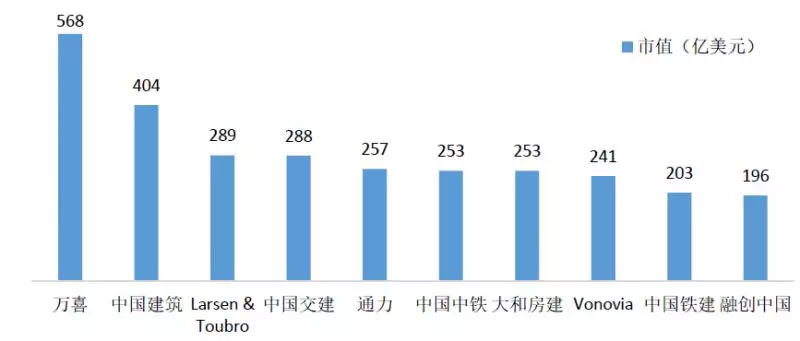 5、市值最高的建筑公司是?從市值來看,萬喜依然排在中國建筑前面,以568億美元的市值排在第1位。市值10強中來自中國的企業(yè)有5家,但是成員略有變化,融創(chuàng)中國取代中國水電進入榜單;Larsen&Toubro來自印度,從去年的第6位上升到今年的第3位;通力屬于芬蘭,從去年的第7位上升到今年的第5位;大和房建屬于日本,名次上升1位;Vonovia屬于德國,名次同樣上升1位。