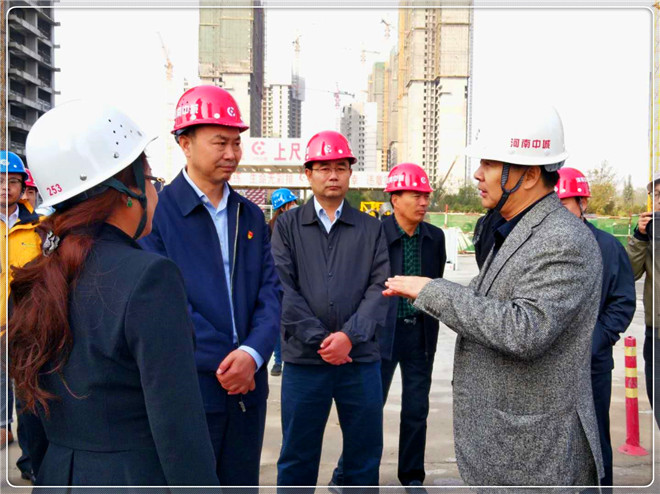 2018年10月18日上午9時30分,開封市黃玉國副市長、市督查局李海軍副局長、市住建局關鐵憲副局長等市領導一行到河南中城金明府項目部進行視察工作,河南中城董事長、總經理、項目部經理、及開發(fā)單位新楓華公司、建工監(jiān)理單位等重要領導隆重出席迎接市領導的視察工作,黃副市長對我公司承建的金明府項目給予了高度評價及認可,并現場作了指導工作。