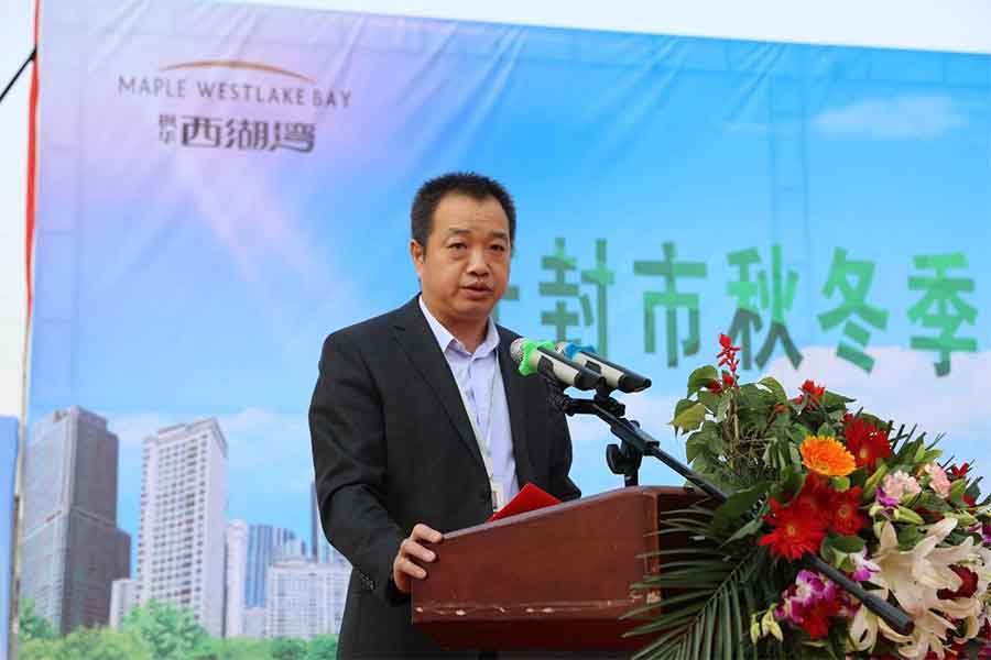 開封新楓華置業(yè)副總裁馬春光受邀上臺發(fā)表講話。開封新楓華置業(yè)始終秉承“國際,人文,生態(tài),唯美”的產(chǎn)品理念,倡導(dǎo)與實踐綠色生活,精工匠筑6000畝灣居大盤楓華·西湖灣。我們愿意攜手各位同仁凝心聚力,將人居環(huán)境回歸“生態(tài)”本質(zhì),為加快建設(shè)特色鮮明、生態(tài)優(yōu)良、環(huán)境宜居的美麗開封做出更大的貢獻(xiàn)!