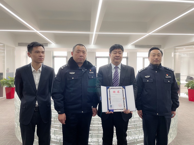 禹王臺公安分局王豐政委為陳董事長頒發(fā)聘書